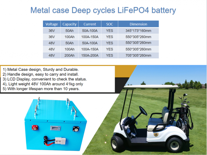48V 100Ah بطارية ليثيوم جولف عربة حزمة لعربة جولف 48V مع علبة معدنية UN38.3 CE MSDS